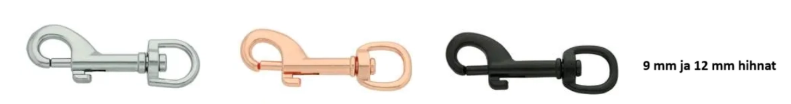 Voit valita joko hopeat, ruusukultaiset, mustat tai ruostumatonta terästä olevat metalliosat. Valikoima vaihtelee hihnan leveydestä riippuen. Hopeat, ruusukultaiset ja mustat metalliosat ovat pinnoitettua metallia ja valitettavasti näissä pinnoitus kuluu mekaanisen hankauksen johdosta, toisinaan nopeastikin. Tämä luetaan tuotteen normaaliin kulumiseen.