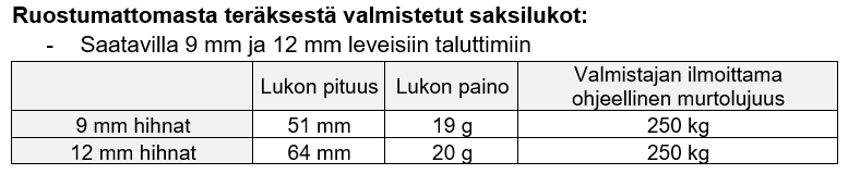 Ruostumattomasta teräksestä valmistetut saksilukot